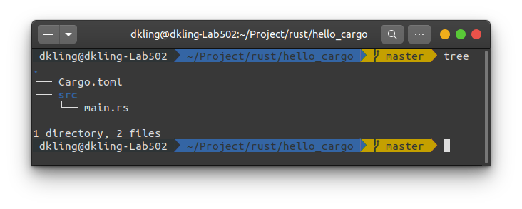 hello_cargo라는 이름의 디렉토리를 생성하고, 해당 디렉토리에서 다음과 같은 구조를 확인할 수 있다.